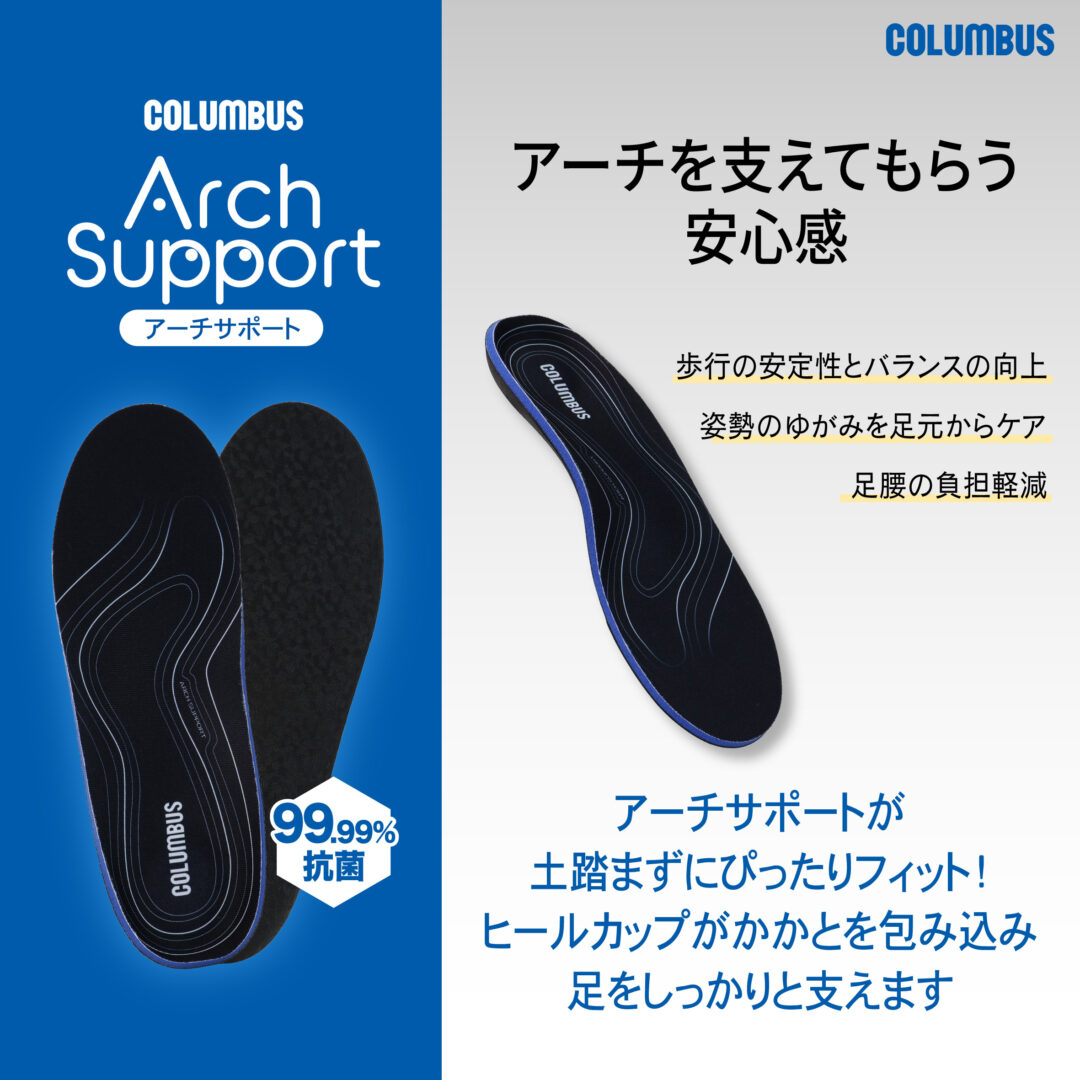 アーチを支えることで、本来の骨格や筋肉の働きをサポートします。