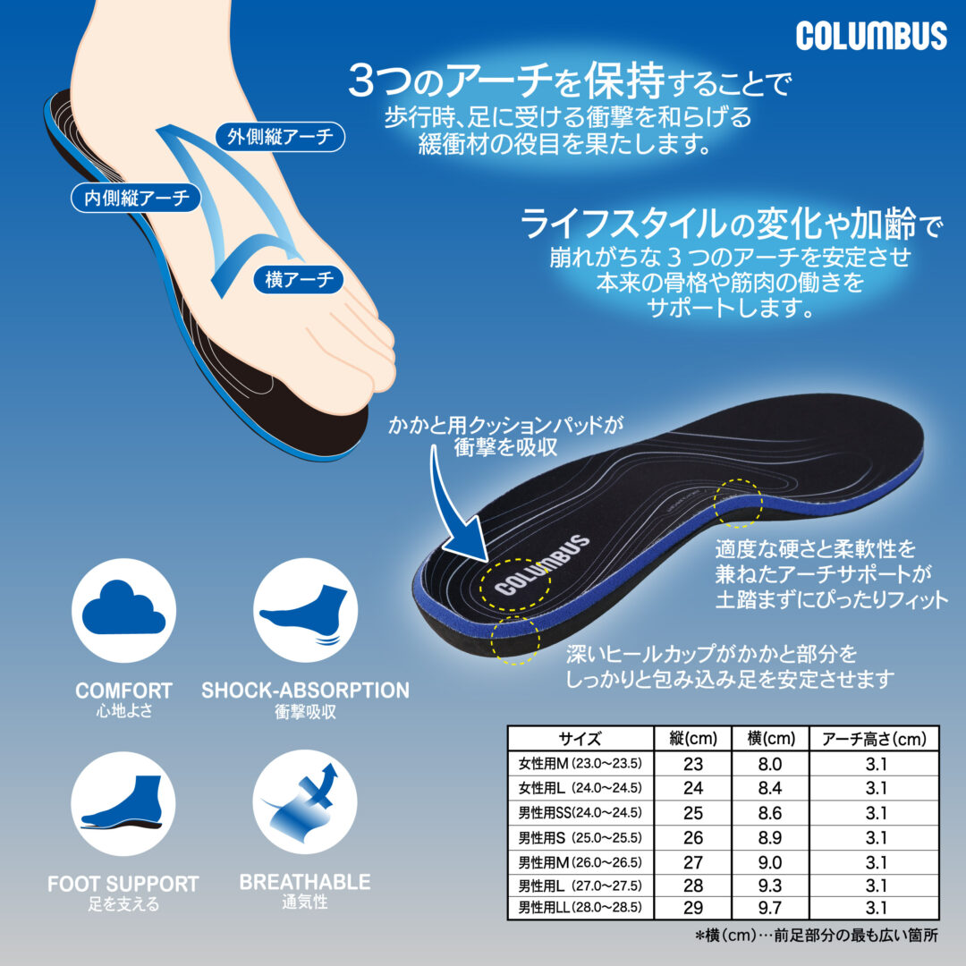 現代のライフスタイルや加齢により崩れがちな3つのアーチをサポート